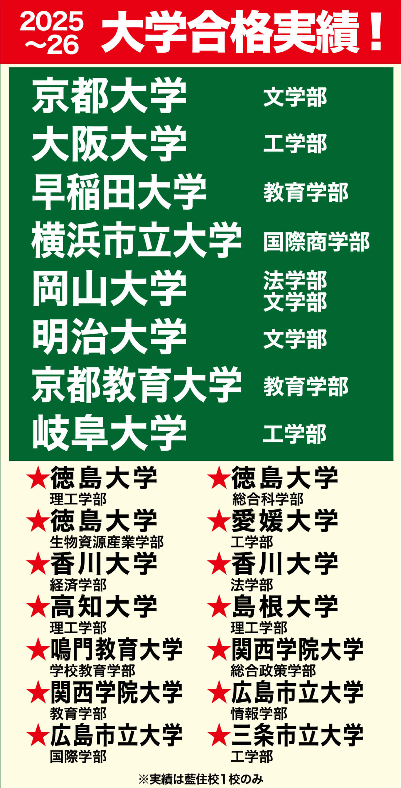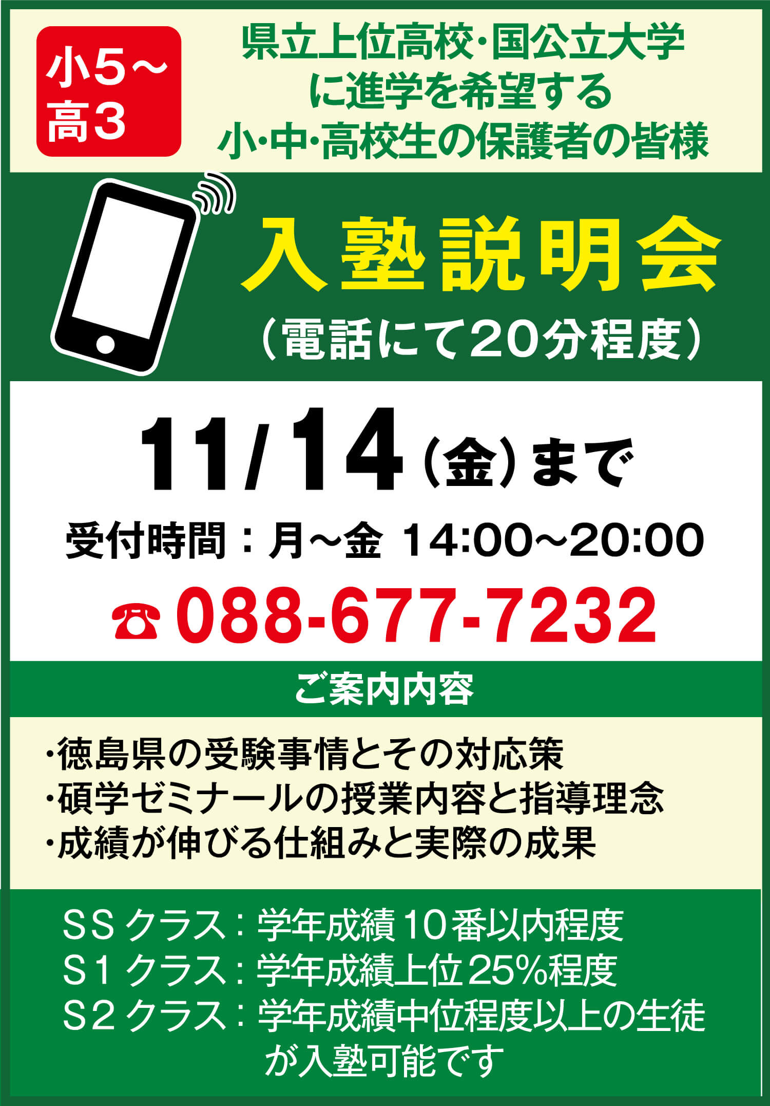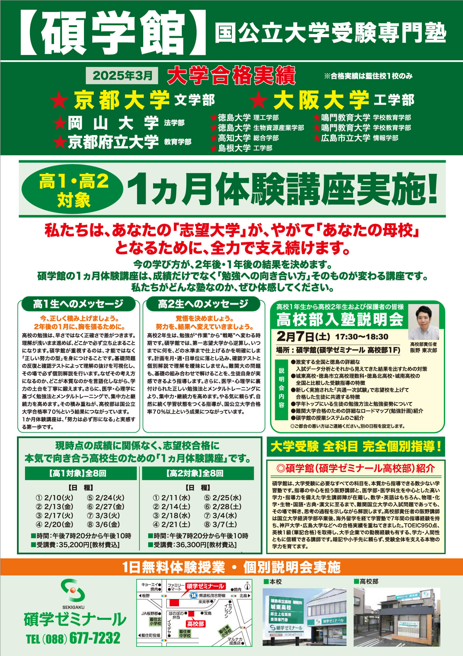 最新の受験技術を導入し、碩学ゼミナールの伝統そのままに人間を鍛えて「成長」を支える!個別面談・カウンセリング・メンタルトレーニングも実施。「英語」「数学」の超基礎(中学生範囲)から徹底指導で最低50点アップを目ざす。また、物理・化学、センター国語、2次試験の国語対策など、志望校別クラス編成で、志望大学合格に必要な全てを揃えています。