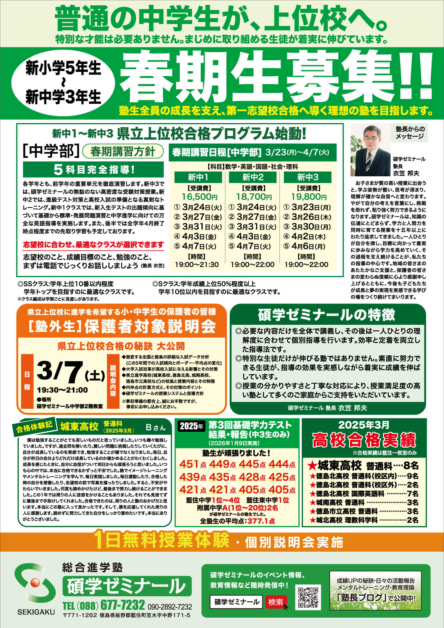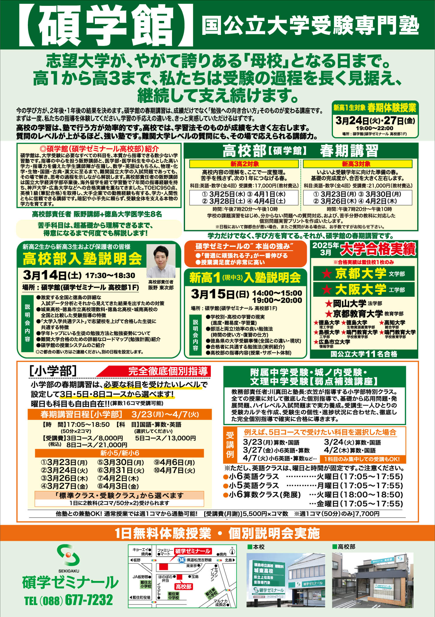 碩学館(碩学ゼミナール高校部)入塾説明会!