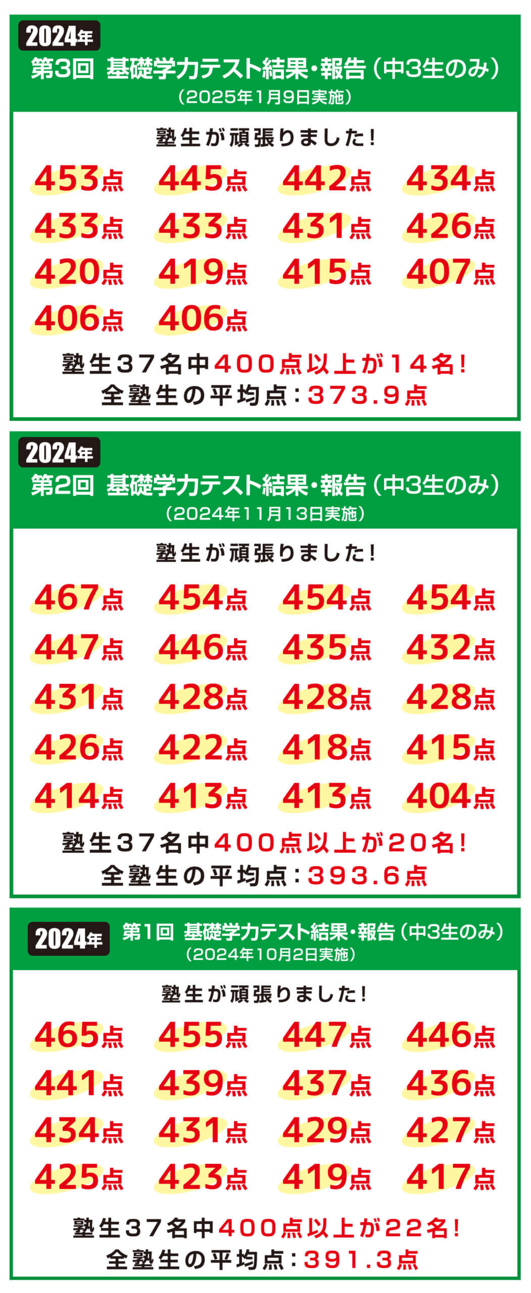 基礎学力テスト・実力テスト・その他すべてのテストで5科目500点満点を実現できる指導体制を備えています。成績学年トップから勉強の苦手な生徒まで、すべての塾生の最高の指導が行えるように最大学年6クラス分けを実施。第一志望校「大逆転合格クラス」など、現在の自分の実力に合わせて、最適なクラスを選べます。また、ベテラン講師が常に子どもたちに寄り添い、誠心誠意生徒の心に届く指導を行っています。
