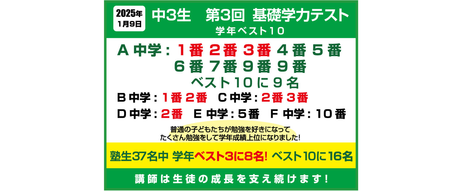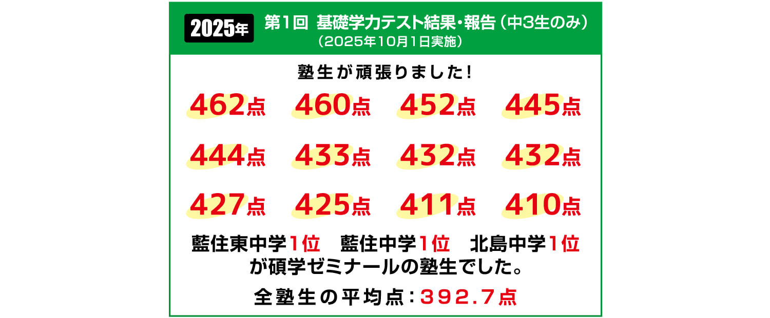 第1回基礎学力テスト「塾生成績」と今後の方針!