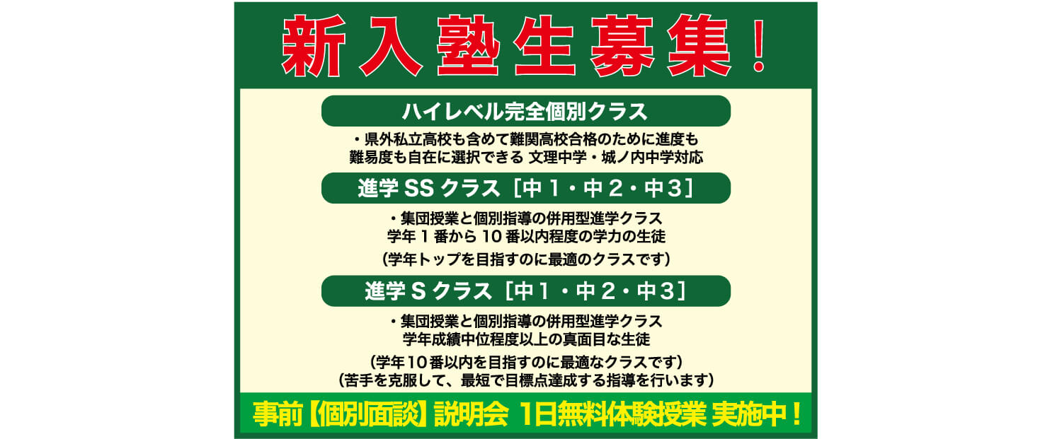 最新の受験技術を導入し、碩学ゼミナールの伝統そのままに人間を鍛えて「成長」を支える!個別面談・カウンセリング・メンタルトレーニングも実施。「英語」「数学」の超基礎(中学生範囲)から徹底指導で最低50点アップを目ざす。また、物理・化学、センター国語、2次試験の国語対策など、志望校別クラス編成で、志望大学合格に必要な全てを揃えています。